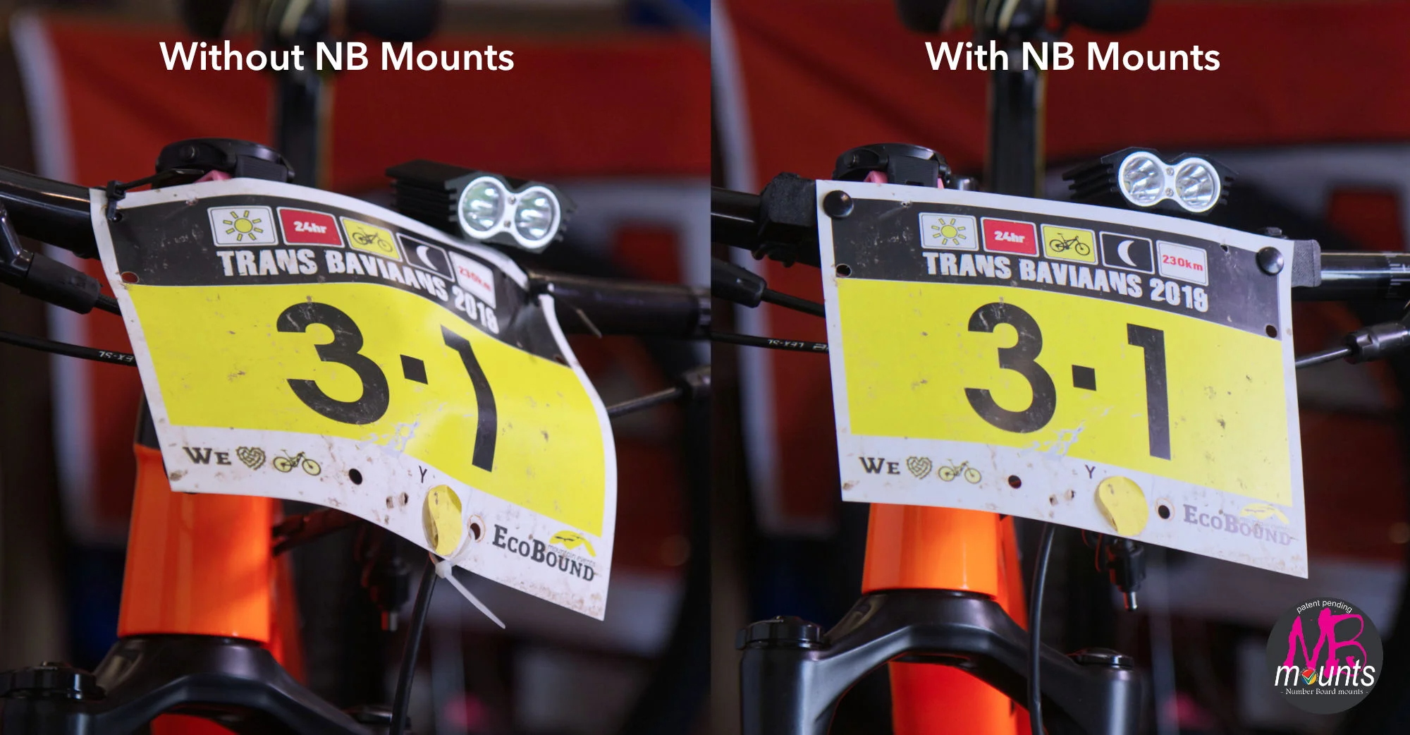 This easy-to-use Number Board Mount is made by injection molding and is tough and durable and perfect for keeping your Number Board secured to your bike! It’s secured to your bike with 2 silicone straps (which can be sold seperately) that you secure around your handlebar and then attach your number board to the mounts with plastic pins.